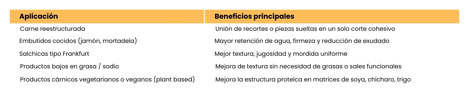 firmeza y cohesión estructural, suavizar cortes más duros sin alterar el sabor y potenciar la