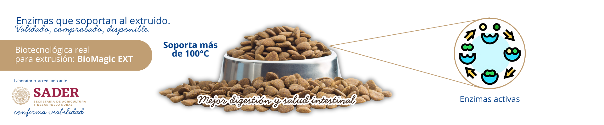 Su alta resistencia a temperatura y pH asegura funcionalidad tras el proceso de extrusión, validada en croquetas finales por nuestro laboratorio acreditado.