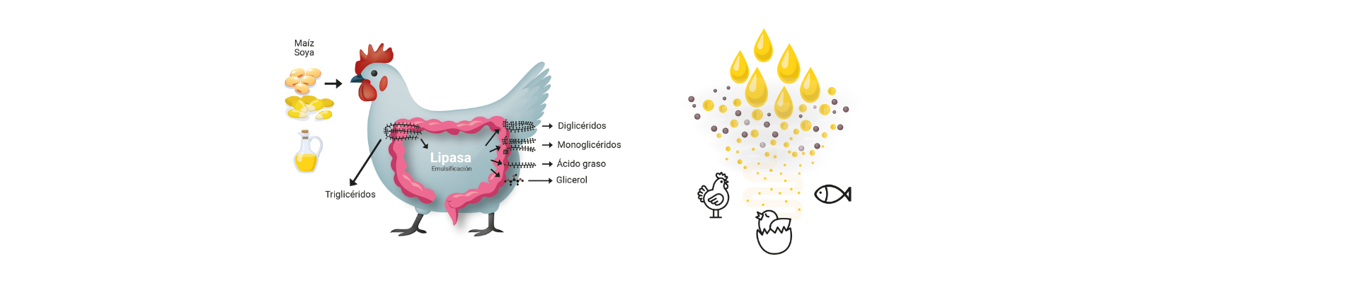 productivo y complementa la acción de la lipasa endógena, especialmente en aves jóvenes